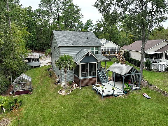 2020 Craftsman style home 3 beds, 2.5 baths, 2,249 sqft. with .46 acres on 169 feet of Lake Murray waterfront. Custom private dock and boat lift. Long gated private deeded driveway. Outdoor grilling kitchen pavilion with water and power. Detached 800sqft. shop/studio that matches house & greenhouse.