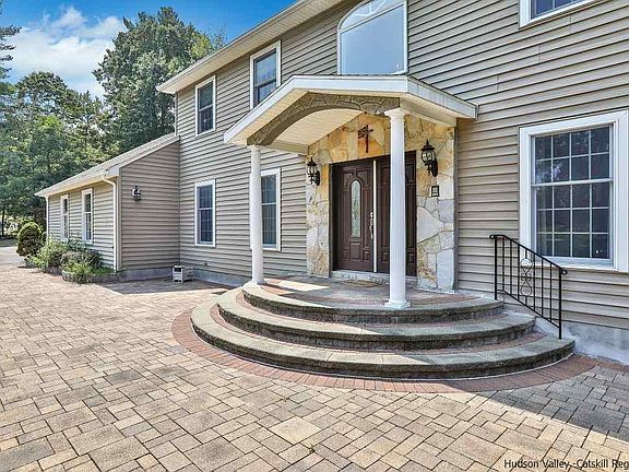 Looking for your own private oasis? Here it is with all the indoor and outdoor amenities of a luxury resort. Framed by almost 2 acres this country paradise has meticulously landscaped grounds, stone retained gardens , an outside kitchen, in-ground pool and patios wrapping around the entire home. Step inside to a soaring open foyer, expansive rooms boast both formal and open family style living/entertaining areas. The grand +/- 4,000 sq. ft home has 5 bedrooms (3-suites with two of their own full bath) lots of natural light along with gleaming hardwood floors throughout. Eat-in kitchen is flooded with oak cabinets and granite countertops, a massive island, double oven, sub-zero fridge and commercial Range. First floor features a living room, family room with a fireplace and vaulted ceiling, a formal dining room with a wet bar and an office . There is also a first-floor wing that has an in-law suite with a full bath and sliding glass doors that lead outside. Elevate to the second level that has a master suite with a full jacuzzi tub, steam tile shower, double sink vanity and walk in closet. There are 4 more bedrooms with California closets and a full bath. Home is filled with windows that boast with natural sunlight throughout. Basement is unfinished with an additional crawl space for storage and walk out access to the yard and patio. Property is nicely landscaped with a heated Inground saltwater pool and gorgeous stone patio with a kitchen that includes two propane boilers, a full counter with a sink and a Viking grill. Home is close to NYS Thruway, Taconic State Parkway, Amtrak train station & just under 2 hours to NYC, come take a look!