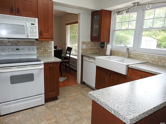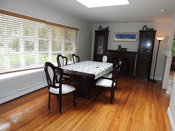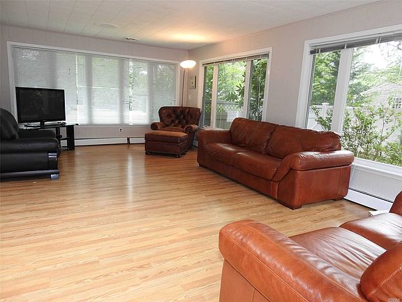 Spacious 3 bedroom 1.5 bath two story home in Hampton Bays. Comes furnished. Includes, landscaped front and back yards complete with swimming pool, brick patio, and outdoor kitchen. Inside are 2 dining areas; formal and informal, light filled den and updated kitchen. Washer dryer in 2 car garage. Central air conditioning.