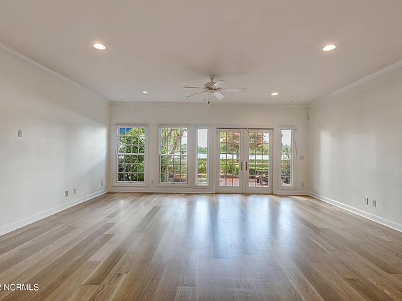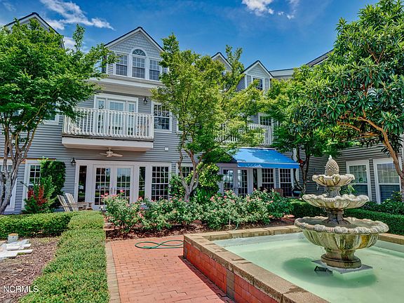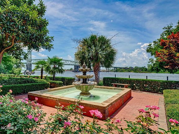 Waterfront living with incredible views on the Cape Fear River in the prestigious, and gated community of Governors Landing. Recent updates include wood flooring, renovated master bathroom and fresh paint. Enjoy your own 30' boat slip just outside your back door, steps to the best of all downtown has to offer. Located on the quiet southern end of the historic Riverwalk in Downtown Wilmington, this 3,000 square foot home is one of the largest waterfront properties downtown. The open floor-plan is characterized by large windows overlooking the English garden, fountain, and private patio. From here you can access your boat slip and the river walk to the heart of downtown. On the west facing patio, enjoy the sunset views of the river or just watch the boats go by! The kitchen is beautifully appointed with stainless steel appliances, granite counters, wine cooler, gas range and wood cabinetry. The master bedroom suite includes a private balcony and renovated bathroom with a double vanity, walk-in shower and soaker tub. There are two additional bedrooms and a full bath as well as a washer, dryer, and soaking sink. The bonus room/large loft area offers many options. It could be a home office, work-out /yoga room or game room. There is an additional theater room as well. The HOA makes life easy, taking care of the landscaping, exterior maintenance, trash, water, sewer, flood/wind/hail insurance, marina maintenance, and security gate.