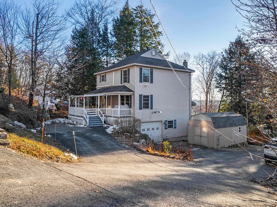 Welcome to Alton Shores, where your charming year-round Home awaits. Nestled in a community on Sunset Lake with 5 private beaches, a boat launch, and access to snowmobile trails, this property is a haven for those seeking both relaxation and outdoor adventures. Located minutes from Lake Winnipesaukee in Alton Bay, this mountaintop glacial lake offers pristine water conditions. Whether it's skiing at Gunstock Ski Resort, snowmobiling through scenic trails, golfing on nearby courses, or enjoying water activities like boating, fishing, and sailing on Lake Winnipesaukee, this property provides an ideal base for recreational pursuits. Large farmer's porch decorates the front of this colonial farmhouse with a year-round sunroom on the back side offering seasonal views of the Lake and Mountains. Eat-in kitchen with plenty of natural light. Well-preserved hardwood floors in the entryway and spacious living room. Ascending the staircase reveals two generously sized bedrooms, each offering its own walk-in closet. Second-floor laundry for convenience and practicality. A pellet stove provides another source of warmth, in addition to mini splits for heating and cooling. For added peace of mind, a whole house generator conveys with the property. Seize the opportunity to own a piece of this serene community. Open House on Saturday, December 16th from 10:00 to 12:00 PM and Sunday, December 17th from 1:00 to 2:30 PM.