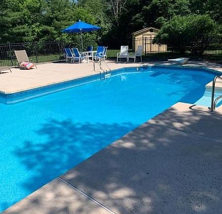 Tastefully decorated & beautifully landscaped home set on a spectacular 1.28 acre lot. Enjoy resort style living in your backyard w heated, inground pool plus a composite expansive deck w pergola. Interior features a chef pleasing, updated kitchen, complete w double ovens & 5 burner DCS range which opens to the sun drenched Family Rm w gas fireplace. Dining Rm is sized for a holiday crowd plus Living Rm is equally spacious. The 2nd fl. has 4 generously sized bedrooms including the master BR, sitting room & a luxurious master bath w jetted soaking tub. Fully finished basement has 3 additional rooms plus a half bath for whatever your needs. There's also a convenient 1st floor laundry rm plus an additional mud rm. All public utilities & centrally located near commuting hwys yet features a very private yard.