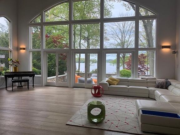 An Ideal Candlewood Lake Waterfront Retreat can be found in this dramatic Contemporary in the private lake community of Oak Point Club . Offering dramatic lake vistas, south, west & east exposure, private dock & jet ski ramp & views from every room. Uniquely designed for maximum light exposure, this 4 Bedroom, 4 Bath Lake Home showcases a 2 story great room with marble floors, floor to ceiling fieldstone fireplace & an arched window wall for lake viewing. Sliders open to a raised stone terrace for lake side enjoyment. The adjacent kitchen with pass through bar offer solid surface counters, breakfast room to read the morning paper while enjoying your morning coffee. The next level showcase 2 bedrooms sharing a tiled full bath plus a den with access to a large deck. The grand master suite offers a window wall through the great room to entertain views of the lake.Double walk-in closet, a Jacuzzi tub, double sinks, vanity table, large shower appoint the Verde marble bath. A third level showcases a grand family room with adjacent office/4th bedroom, full bath and second Fieldstone fireplace. Again amazing lake views capture the essence of lake living. A One of a Kind, unique lake opportunity! Great Space at a Great value! Just 75/80 min to NY city! Close to New Milford town center with town green, movie theater, restaurants and more! A Candlewood Lake find!