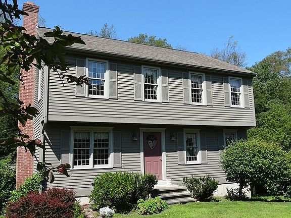 Convenient Location with access to all major routes, Close to everything but quite and secluded. Well maintained colonial in desirable family neighborhood with privet back yard on acre lot at end of Cul-Da-Sac. The setting is magnificent. Bright and airy sun room overlooking woods, Cathedral master bedroom, Central air, Fireplace in family room, Large bedrooms, 2 car garage, Extra storage garage under sun-room, Matured landscaping. Recently painted, newer roof and water heater. Grate opportunity to live in the charm of Hopedale. Sale Subject to seller finding suitable housing.