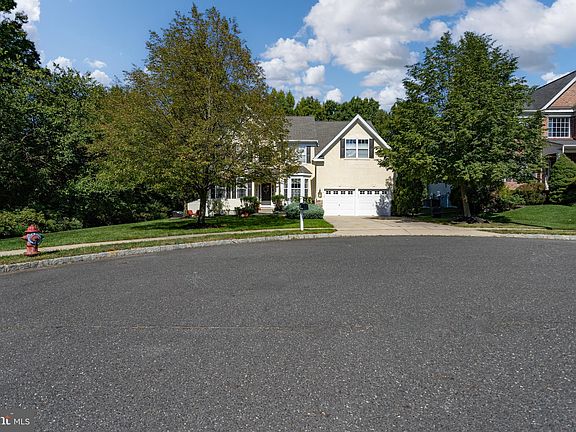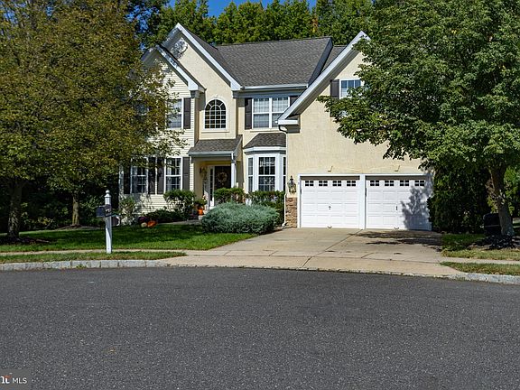 Welcome to this gorgeous home nestled on a quiet cul-de-sac in desirable Preserve at Meadow Run neighborhood in Bordentown. As you step into this home you're greeted by a grand 2-story foyer, you'll immediately notice the attention to detail. To your left, a spacious living room awaits, to the right, a large formal dining room both rooms boasting gleaming hardwood floors and elegant crown molding, with the dining room offering a bay window, chair rail, and beautiful wainscoting—perfect for hosting family gatherings. Just down the hall the French Doors lead to the bonus room, currently being used as an office but also perfect for a playroom of main level bedroom. The huge and open great room is ideal for entertaining, offering vaulted ceilings, recessed lighting, a ceiling fan, and a cozy gas fireplace. Large windows bathe the space in natural sunlight. This is a space the entire family is sure to enjoy. Adjacent is the gourmet eat-in kitchen, a chef’s dream, complete with ceramic tile flooring, 42" maple cabinets with slide-out drawers, granite countertops, a breakfast bar, double sink, double oven, newer dishwasher, a spacious 6x6 pantry, and a butler’s pantry. The kitchen also features a decorative backsplash, and a laundry room is conveniently located nearby. Upstairs, you’ll find four generously sized bedrooms, including the luxurious primary suite. This serene retreat offers a large sitting room, three walk-in closets, built-in storage, and an ensuite bathroom with a jetted soaking tub, shower stall, and dual vanities and second full bathroom w/dual vanity, tub and linen closet. The finished basement provides even more living space with a wet bar, a gym area, and plenty of storage. Outside, the multi-tiered deck overlooking the secluded backyard w/fire pit and pond w/fountain in the background makes for a perfect place to enjoy your morning coffee or evening glass of wine. Other features of this home are attached 2-car garage, 2 zone HVAC, shed w/electric, sprinkler system, new shutters, new siding and a new roof. Close to dining and shopping and minutes away from 195, 295, NJ & PA TPKS, MDL Joint Base make for easy commuting. Schedule your private tour today and make this exceptional property yours.