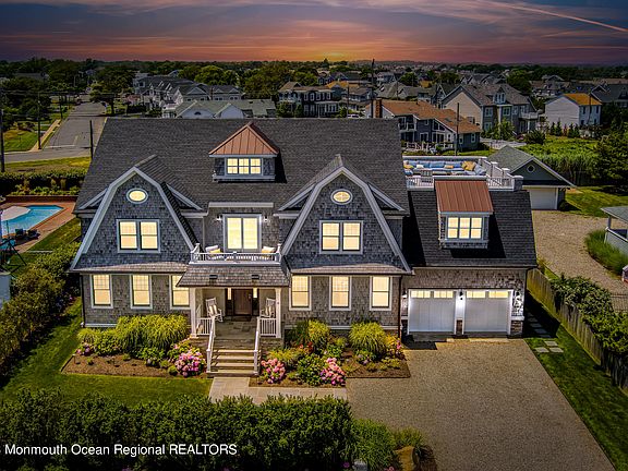 LIVE THE LUXURY COASTAL LIFESTYLE! This custom 7 bed 7.1 bath home was built opulently from the imported Vermont wood floors to the sports car lift in the garage. Located across from the beach offering both ocean & river views. The Hamptons style backyard lined w/ lush landscaping boasts a 450 sqft concrete pool, bluestone covered patio w/ an outdoor fireplace, & an outdoor shower. The main fl features a dining room, living room, chef's eat-in kitchen, 1st fl bed w/full bath, laundry room, & a lounge w/ a full bar & wine cellar. The 2nd fl houses a grand primary suite, 5 beds & 4 full baths, & a 2nd fl laundry room. On the 3rd fl you'll find another living space w/ a kitchen, full bath, & an 480 sqft outdoor deck. This gorgeous coastal home is a rarity, schedule your showing today!