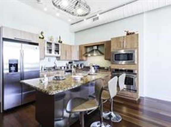 - Kit Dscrp: Countertops - Stone/Granite/Solid, Dining Area, Stainless Steel Appliances, Kitchen Island, Flooring - Wood, Gas Stove