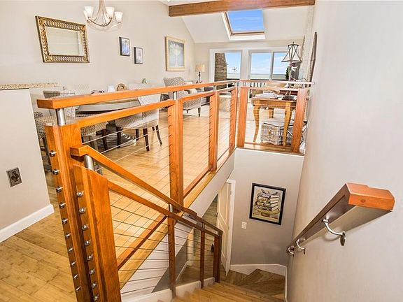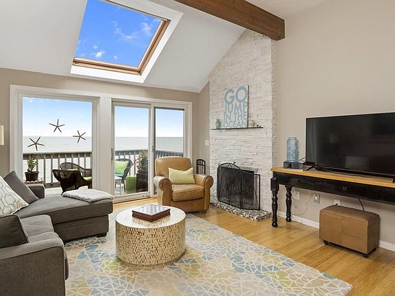 Enjoy life on the coast in this direct oceanfront townhome with SPECTACULAR water views of the Boston skyline and Nantasket Beach! The sun-filled interior and multiple private decks offer the best of resort style living. A chef's kitchen includes stainless appliances w/ breakfast bar and opens into the family room with magnificent panoramic views from deck. Lower level functions as private suite, WFH space or bonus entertaining room. It is fully equipped with a wet bar, beverage fridge and microwave. Slider accesses lower patio and path to private deeded beach for residents. There are 3.5 baths, 3 wood burning fireplaces and the largest private end garage in the complex. Atlantic Hill I recently completed exterior updates which include new siding, roofs, gutters, decks, stairs, railings, garage doors, an amazing community roof top deck with lounge furniture AND a patio with propane fire pit. Beautiful sunrise and sunset views over ever changing landscape. Short walk to restaurants.
