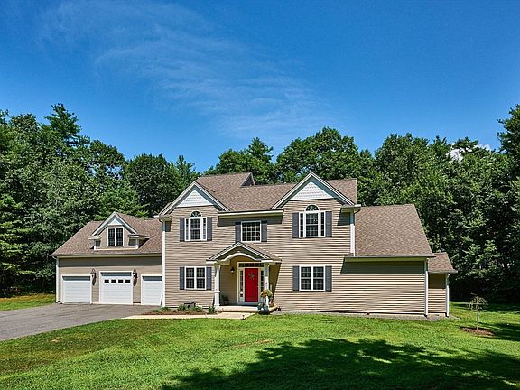 Are you looking for a large home in a wonderful neighborhood that also offers the privacy of a 2.5 acre lot? This wonderful Colonial has it all with an attached 3-car garage, convenient first floor laundry/ 1/2 bath, beautiful kitchen that is open to the living room with a fireplace and vaulted ceiling to a second floor balcony. The elegant kitchen has granite counters, a breakfast bar and nice dining area for casual dining. There is also a dining room for formal gatherings, a home office, and a stunning first floor main bedroom suite with a soaking tub, double vanity and shower. The second floor also has a bedroom suite with a private bath, 2 additional bedrooms, a common full bath and a huge bonus room! Plenty of yard area for outdoor activities, gardening and gatherings with a perimeter of wooded area creating a rural feel. All within a short drive to local colleges and close access to the Mass Pike. OPEN HOUSE Sunday July 14, 1:00 to 3:00 PM.