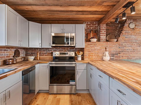 A historian's delight! Having recently undergone a complete renovation, this 5-bed, 2.5-bath Essex Colonial blends modern updates with charming, original features. The main living space offers a spacious open-concept kitchen and dining area, complete with stunning red oak floors, a butcher block countertop, new stainless steel appliances, reclaimed wood ceilings, and exposed brick walls. Red oak flooring and exposed brick continue into the cozy living room, which offers a lovely attached office space. On the opposite side of the home, the first floor also features an incredible bonus space, with maple floors, hand-hewn five-sided ridge pole beams, two bedrooms, and a large storage closet with laundry hookups/potential for another bathroom. A convenient half-bath located just off the kitchen completes the main level. The second floor boasts a bright primary suite with a full bath ensuite with a heated towel rack, two additional bedrooms, and another updated full bath with a heated towel rack. Outside, enjoy a level 0.47-acre lot with endless potential. A detached one-car garage with loft space and a separate carriage house offer ample storage and opportunities for growth; duplex or ADU possible per zoning regulations. This home is incredibly energy-efficient, with new insulation, roof, siding, windows and more—see feature sheet for complete details! Located just minutes from the Essex Experience for dining, shopping, and entertainment, and only 20 minutes to Burlington!