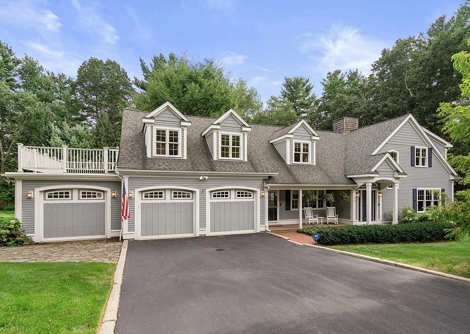 Quality of construction in this 4 bed/ 4.5 bath Nantucket Style Cape home abounds; manicured grounds spread over a level acre within one of Westwood's most desired neighborhoods abutting Hale's 20+ miles of trails. Enter into the foyer and take in the soaring ceilings, custom millwork, gracious dimensions and thoughtful layout. The oversized chef's kitchen offers custom inset cabinetry, walk-in pantry with beverage station and wet bar, oversized island, full seating area and access to the composite rear deck. The family room opens to the kitchen and first floor office with built-ins overlooking the rear yard. Full sized dining room and living room complete the first floor. Upstairs are four bedrooms including a spacious primary suite with two walk-in closets, a five-piece bathroom, vaulted ceiling and custom window seats with cedar storage. The walk-out lower level has full bath, gym, storage, wine room, and bonus space. Hydro-air, Generator, so many updates! Easy Commute, Top Schools
