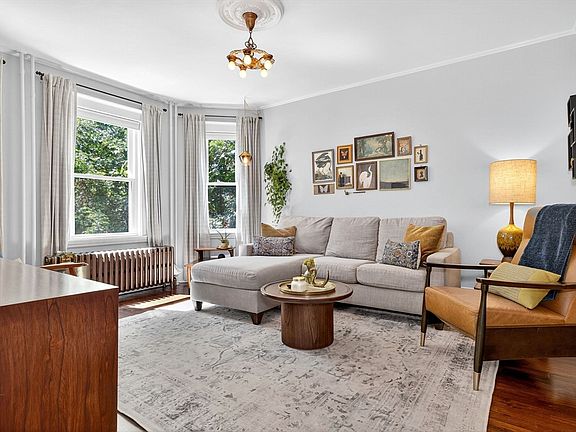 A DESIGNER'S DREAM ! Located in Jamaica Plain's tree-lined Parkside historic neighborhood. STYLISH & CHIC This home is alive with charm! Set high off the street, the unit boasts abundant sunlight, tall windows, and exquisite architectural detailing, all beautifully accented by designer colors and elegant hand-selected custom lighting. Creatively renovated by opening the walls to create an open, spacious, sunny living room and dining room, which seamlessly flow into the large eat-in kitchen with a fabulous updated laundry room. The primary bedroom, situated at the back, offers a warm and serene retreat with a lovely view of the backyard. Recent updates include a chic renovated bathroom with designer tiles, vanity, and fixtures, a professionally landscaped backyard, and fresh exterior paint. Enjoy easy access to parks, the Green Street train station, and Jamaica Plain's vibrant array of fun restaurants and breweries!
