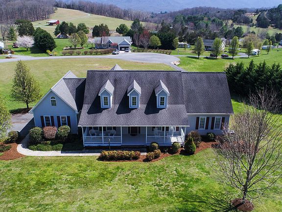 Expansive mountain views will invite you into this custom built Southern Living home where you'll love the open floor plan,cathedral ceilings, skylights, fire place and custom built-in cabinets. The dining room and kitchen open to the living area with mountain views from every room. Large main level master en suite, walk-in closet, and French doors that lead to the deck. Two additional bedrooms, full bath, laundry room and small office space completes the main level. The second floor offers a large bonus room, could be used for a 4th bedroom. Balcony overlooks the living area below. The basement has a large rec room with gas fireplace, mini frig and game table area. If you need a workshop the unfinished part of the basement has been set up and is currently a wood working shop. Large