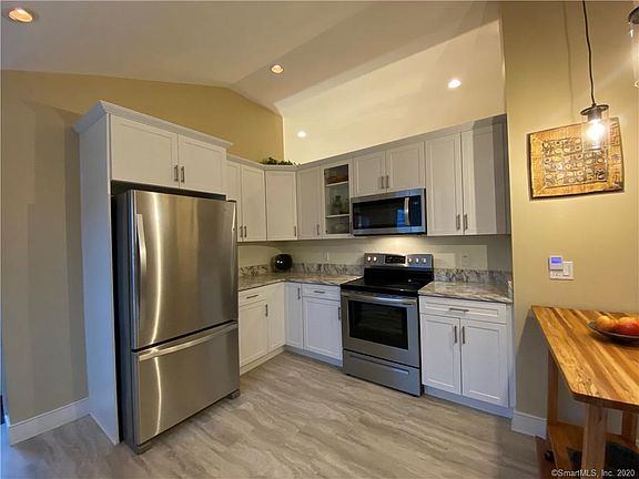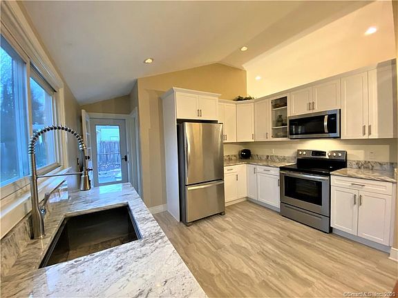 Charmingly warm & stylish, sparkling fresh, & contemporary, this lovely 2-bedroom ranch offers a vaulted ceiling open floor plan. Hardwood floors in LR, Dining Area & Bedrooms. Brand new Kitchen features white cabinets, granite countertops, stainless steel appliances & attractive vinyl plank flooring. Updated full Bath with glass enclosed tile shower, granite topped sink cabinet, tile floor. Bonus is 192 SF tile floored sunroom off dining area. Full basement with heat is partitioned & offers good space for exercise room, office, workshop. Detached 1-car garage has attached screened enclosed porch. Level yard, stonewall back border & well designed perennial garden areas. Pretty cul-de-sac neighborhood conveniently located near town, schools, shopping malls, beaches, commuter links.