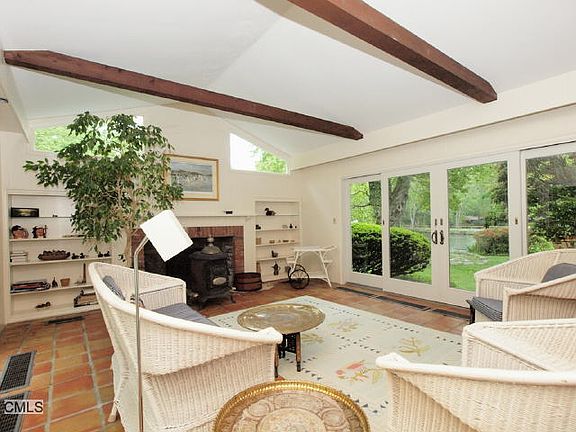 Space and tranquility await in this desirable Darien location! This six-bedroom five bath contemporary home sits on 1.6 acres close to town yet with compete privacy. This home offers a flexible floor plan with master bedroom options on the first or second floor and plenty of living space. The updated kitchen opens to a family room with a breakfast area and inviting woodburning stove. The living and dining rooms have floor to ceiling windows that look out on the expansive flat yard and pond in the distance. The great room with vaulted ceilings and fireplace opens to the patio and backyard. Plenty of home office or gym possibilities. With an oversized 2 car garage including a potting shed and extra storage. You don't want to miss this unique and spacious home in one of Darien's best neighborhoods-walking distance to town, Cherry Lawn, The Nature Center, and Royle Elementary School.