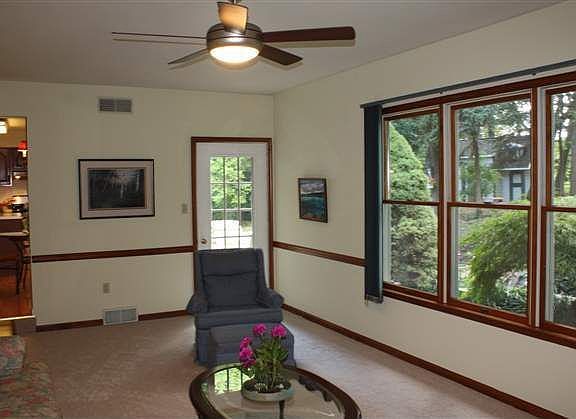 Mature landscaping and beautiful private wooded rear yard, newer roof, new carpet, four walk-in closets, cherry cabinets and newer appliances in kitchen. Sunken living room. Beautiful home, close to the hospital and office parks, and convenient to the downtown. Two separate HVAC systems, lower level is finished with a full bathroom. Easy to get to work, schools, and shopping. FIOS available.
