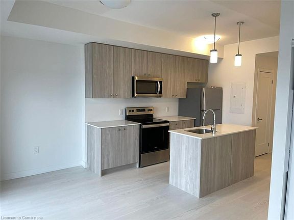 Welcome to this modern and beautifully maintained condo townhome, ideally located in the heart of Kitchener thriving Laurentian Commons community. This newer-built features 2 bedroom, 2 bathroom and 2 balconies home delivers the perfect combination of style, comfort, and convenience for todays urban lifestyle. Step inside to an inviting open-concept main floor, where a designer kitchen shines with stainless steel appliances and spacious eat-in island. The upper level features 2 large bedrooms, including a stylish primary suite with direct access to a private balcony. Enjoy the added luxury of a second-floor laundry area designed for effortless living. Major shopping centers within walking distance. McLennan Park just minutes away for trails, playgrounds, and outdoor activities. Highway 7/8 and Conestoga Parkway nearby for easy commuting, and quick access to Ion Light Rail and Grand River Transit.