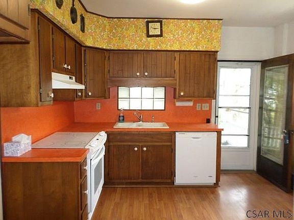 2 story brick/shake home in Greater Johnstown School District. Kitchen has double sink, wood cabinets & access to back porch. Carpeted living room has wood burning fireplace, built-in bookcases & ceiling fan. Dining room has w/w carpeting & open to living room. 2nd floor has 3 bedrooms with hardwood flooring. Linen closet in hallway. Full bath w/ vanity & tub/shower. Full unfinished basement w/ laundry hook-ups, toilet, shower & storage under porch. Detached 2 car garage. Ask about a one year warranty. Call today to schedule a tour!!