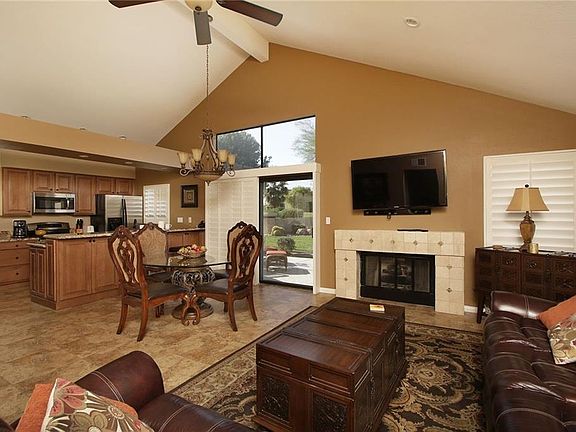 Completely upgraded, spacious, unfurnished, single level condo in gated Silver Sands Racquet Club. Corner unit with mountain view from courtyard and greenbelt view from back patio. Larger suite has built-in closets, fan, direct access to enclosed courtyard and en suite with walk-in shower and double sinks. Second bedroom has view of enclosed courtyard. Second bathroom has tub shower combo. Living room features a gas fireplace, mount for television above fireplace with basic cable and open floor plan to dining area. Kitchen features granite counter tops with plenty of storage, wine cooler, and stainless steel appliances. Complex has guard gate, tennis courts, pools and spas, clubhouse and fitness center. Located close to shopping, downtown and freeway. Walk in, relax and enjoy Palm Desert lifestyle today! (Pictures shown with furniture; home is currently unfurnished) 12 month or longer lease term. Owner pays HOA fees, includes basic cable, and gardener for courtyard. Tenant pays for utilities. No smoking.