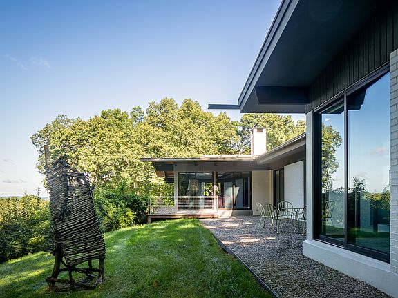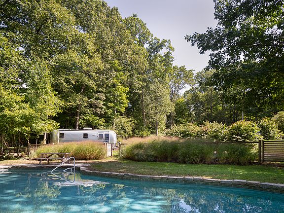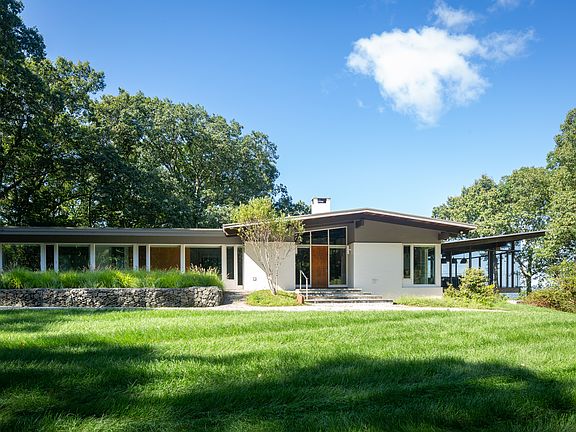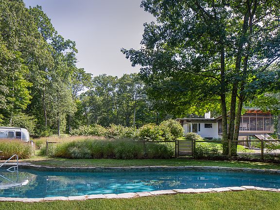 Mid-Century Paradise - Perfectly situated on 10+ private acres with breathtaking sunset views, this fully restored mid-century home is a true masterpiece. The creation of owner/architect Donald Billinkoff and his wife, this incredible property includes the 3+ bedroom home, a heated pool, as well as a renovated Airstream camper that is used as a pool/guest house. Entering the front door, one is drawn from the foyer into the living room anchored by a handsome industrial fireplace composed of concrete block and blackened steel. The open layout flows from here to the formal dining room spacious enough for a table for twelve . Both the living and dining areas share floor-to-ceiling walls of glass as well as a vaulted ceiling with exposed beams. From the dining room, French doors open to a 600 square foot screen porch large enough for a sitting & dining areas as well as dedicated grill station. The chef's kitchen features a gas cooktop with custom stainless steel hood, two refrigerators, and a lovely eating area. A light-filled hallway leads to the more private section of the home - a den with sliders to an outdoor patio, an office (easily converted into an additional bedroom) and a bedroom that both share a hall bath, and the master bedroom suite that enjoys the view from two sets of sliders. Additionally, there's a recently added large studio space featuring exposed beams and a polished concrete floor and a guest room with full bath on the lower level.A rare find in the Litchfield Hills - a warm modern home that evokes the best of mid-century style.