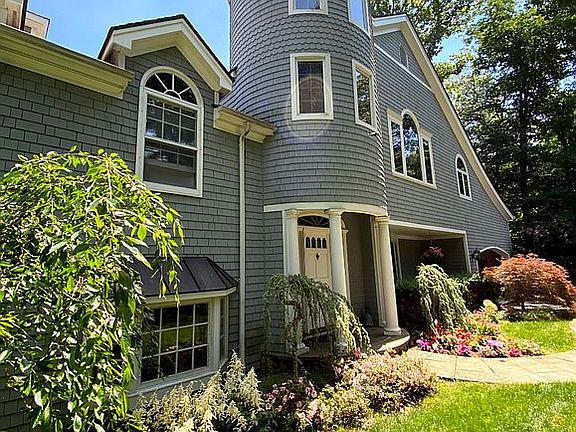 Gracefully situated on a lushly landscaped enclave in the Parish Road South cul-de-sac, this masterfully renovated shingle style home offers luxurious living just minutes from downtown New Canaan. The dine-in Country Kitchen offers soaring vaulted ceilings, custom cabinetry and woodwork with triple-freezer drawers and high-end appliances. This home enjoys copious natural light throughout the day. Beautiful french doors in four different rooms open onto an expansive bluestone terrace with protected forest views. Multiple patio dining and seating areas great for entertaining and taking in the views. The soaring entry foyer flows into a living room with oversize windows and marble wood-burning fireplace. The entire home has beautifully maintained hardwood flooring and custom woodwork. All full baths in the home boast rain showers and tile finishes. The third floor consists entirely of an expansive master suite with windowed dual walk-in closets, gas fireplace, multiple sitting areas, and a large balcony overlooking the treetops. The spacious master bath has radiant floor heating, jetted jacuzzi tub and granite dual vanity. The casual family room has a brand new wet-bar and also opens onto the patio area. Enjoy the dedicated home office or library room and new laundry appliances. This warm New England home offers a well thought out floor plan for modern lifestyle and entertaining.