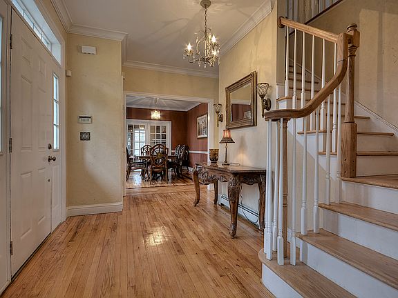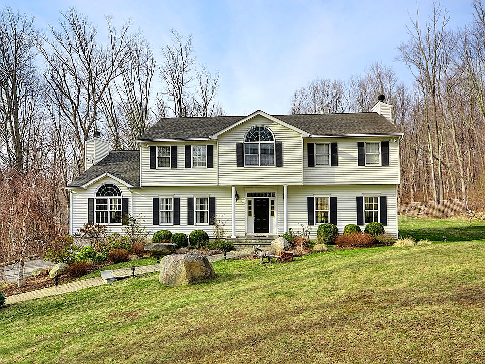 Lovely bright beautifully landscaped 4 Bedroom, 3 Bath, Center Hall Colonial featuring a 40' x 20' gunite pool, w/fountains, builtin jacuzzi, automatic pool cover, bluestone decking and trex deck. Enter the private setting, from the cul-de-sac on a dead-end circle, through stone pillars and a long driveway. Classic design, all hardwood floors, Living Room w/fireplace, formal Dining Room with french doors, Kitchen with Bosch stainless appliances & Breakfast area, Family Room w/ stone fireplace & cathedral ceiling. Large Master Bedroom with vaulted ceiling, 2 walk-in closets and Master Bath with heated floors, free standing tub, and large walk in shower, plus a bright Office and bath on main level. 3 car garage, lots of additional storage space in basement/attic. Automatic propane full house generator.