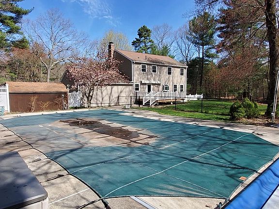 This 4 bedroom Colonial is located in a desirable cul-de-sac neighborhood with an easy walk to the commuter train station and the Ashland town forest. Large fenced in back yard, heated in-ground pool with retractable cover! The foyer has 2 coat closets including one which you can walk in too! Family room with gleaming wood floors, fireplace with a wood burning insert, and custom built-ins. Eat-in kitchen with quality custom cabinets, granite counters, tile back splash, and stainless steel appliances. Dining room opens up to a large living room both with gleaming hard wood cherry floors. Upstairs you'll find more gleaming hardwood floors through out all the bedrooms and the landing! Spacious master bedroom with 2 closets and an updated full bath. The hall bathroom has also been nicely updated. Three more bedrooms round out the 2nd floor. Central air and a partially finished basement. Recent updates- heating system with tank-less hot water, windows, siding, and deck.