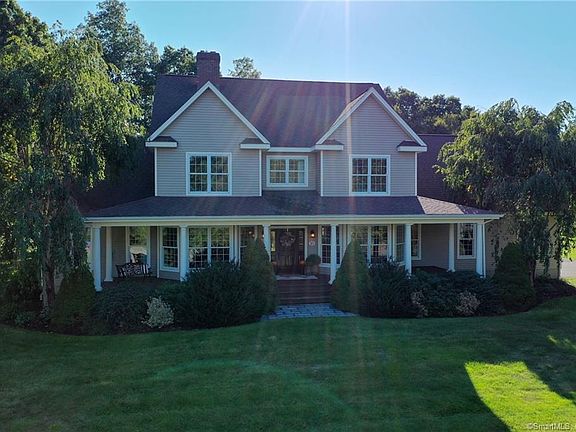 Gorgeous Farmhouse Colonial with expansive front and back porches to watch the sunrise and the sunset! Perfectly situated on a corner lot at the end of a cul de sac to ensure complete privacy, this home is right out of a magazine! The park-like grounds are spectacular with stonewalls, patio, a pergola extraordinaire and the most beautiful gardens! As you walk through the front door, you will fall in love with this home's perfect floorplan! There is a large dining room with wainscoting and large windows looking out to the front porch. The office/sitting room shares the same view and leads you to the first floor master with fireplace, walk in closet and incredible full bath with jetted tub, tiled shower, and view of the back yard gardens! The true chef's kitchen has a commercial grade stove, a gigantic island for both seating and food prep, 2 sinks , granite counters and cabinets galore! The kitchen opens up to a 2 story family room with fireplace, built ins and a wall of windows that fill the room with light and overlook your beautiful back yard! Upstairs you will find 3 more large bedrooms with ample closets and a supersized bonus room for a teen space or 5th bedroom. A Loft upstairs overlooking the family room for an extra office/play space. The home also boasts a mudroom, laundry room, half bath, hardwood floors, and indoor/outdoor speaker system. It's just minutes to Lake Pocotopaug and the Village Of East Hampton. A easy commute to the Cities! TRULY A DREAM HOME!