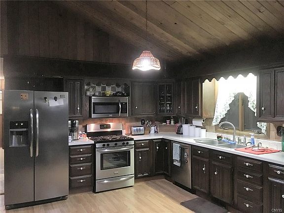 Well maintained Waterfront 3 bed 2 bath Ranch. Boaters Delight, wrap around deck over looking large lot mature trees and Oswego River. 150 Ft waterfront with dock vaulted ceilings, 2 sliders large windows for lots of natural light, fantastic views cozy fireplace off kitchen/ great room, 1st floor laundry, 1st floor master, mud room and fully finished basement with 2 bedrooms and 1 full bath. USDA eligible, This is a MUST SEE, priced just above assessed value.