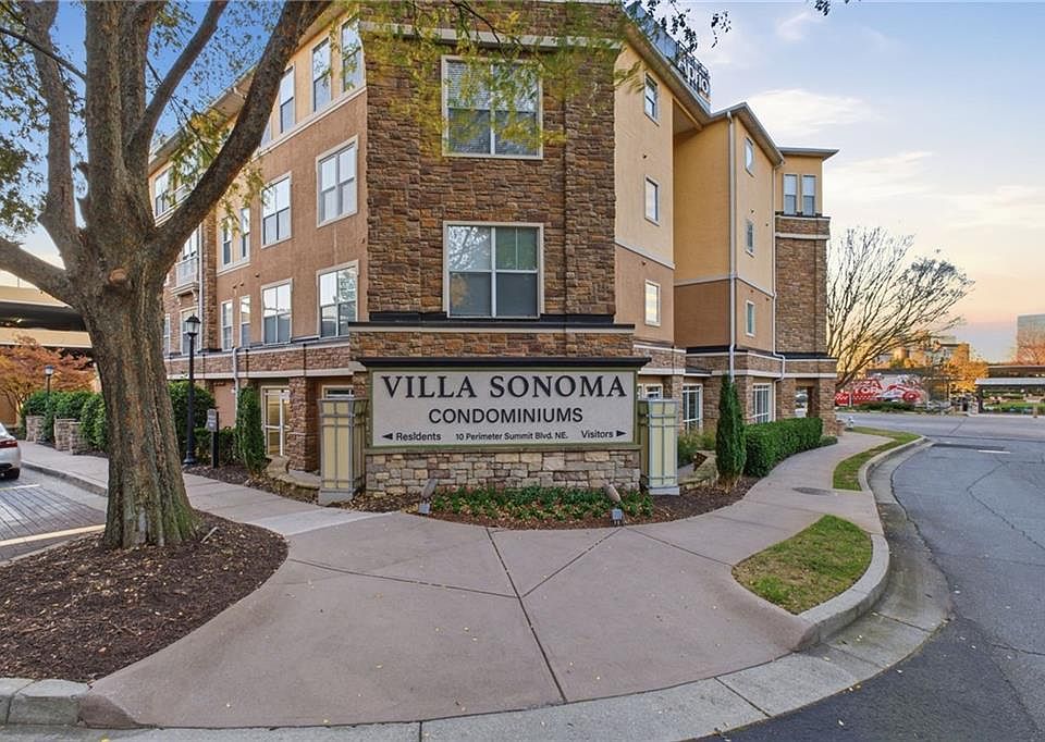 Welcome to 10 Perimeter Summit Unit 4439, a light, bright, and airy 2 bedroom, 2 bath condo offering modern comfort and unbeatable convenience in the heart of the Perimeter area. This beautifully maintained top-floor unit features an open layout and a chef’s kitchen complete with stainless steel appliances, gleaming white cabinets, and granite countertops. Wood and tile flooring run throughout the main area with newly carpeted bedrooms, creating a cohesive and low-maintenance living experience. The primary ensuite offers exceptional privacy and comfort with double sinks and an enormous walk-in closet. The spacious secondary bedroom and full bath provide the perfect setup for guests, roommates, or a dedicated home office. Large windows fill the space with natural light and offer great views in this true lock-and-leave residence. Villa Sonoma delivers a resort-inspired lifestyle with amenities designed for comfort and connection. Enjoy a resort-style pool, generous green spaces and walking trails, dog trails, a fully equipped fitness center, conference room, clubhouse, billiards lounge, movie theater, and a car wash area. The community hosts regular social events including food trucks, movie nights, and rotating gatherings, creating a fun and engaging atmosphere for residents. EV charging stations are available for an additional fee. The location is unbeatable, just steps from Villa Christina Café, The Little Gem diner, and the Perimeter Coffee Shop and moments from Perimeter Center’s shopping and dining, the new Target, and nearby parks such as Blackburn Park and Murphy-Candler Park. Perimeter Mall, top-rated restaurants, and major retailers are all within minutes. With fast access to GA-400 and I-285, commuting anywhere in Atlanta is effortless. Don’t miss the opportunity to experience a perfect blend of comfort, convenience, and community in one of the most desirable locations inside the Perimeter. Unit 4439 at Villa Sonoma is ready to welcome you home. Assigned parking spots are #387 and #543. parking spot #543. Ask about our preferred lender credit up to 1% of loan to be applied toward closing cost credit or rate buy down.