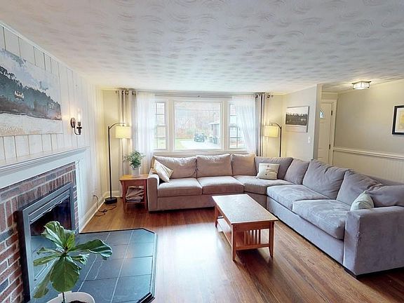 VERY DESIRABLE LOCATION IN THE HOOD SCHOOL DISTRICT.. This home is much larger than it appears from the outside. The home has gleaming hardwood floors, and updated kitchen with GRANITE counter tops, STAINLESS STEEL appliances and an eat at island, with an adjacent dining area. The current owners have replaced the roof, the electricity to the pool, the furnace and septic are two years old, and the fireplace has a new liner. There are 3 generously sized bedrooms with ample closest space and hardwood floors. The lower level is a great space with two rooms one media room with built-ins and another room which could be a home office, guest room or study. There is also a brand new 1/2 bath. The lot is large, abuts conservation land has a very large grass area and a built-in pool set off separately. The home is located is in a double cul de sac neighborhood and is in walking distance to the Hood Elementary School. The septic is a clean water system and is two years old. WELCOME HOME!!