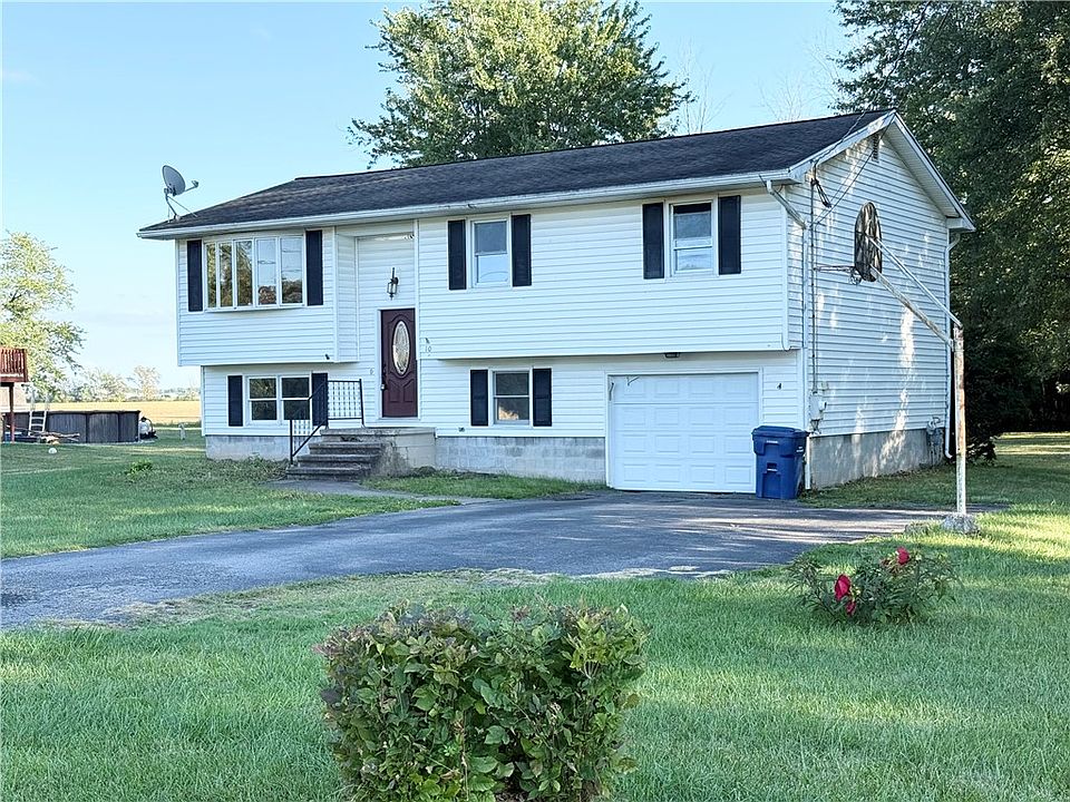 THIS 4-BEDROOM, 2 FULL BATH HOME WITH ATTACHED GARAGE IS BEING SOLD "AS IS" AND WILL REQUIRE REPAIRS AND UPDATING THROUGHOUT. THE MAIN LEVEL OFFERS A LARGE LIVING ROOM WITH SHINY HARDWOOD FLOORS, A DINETTE AREA WITH HARDWOOD, AND GLASS SLIDING DOORS THAT OPEN TO A DECK IN POOR CONDITION. THE KITCHEN INCLUDES APPLIANCES, AND THREE BEDROOMS WITH CLOSETS SHARE A FULL BATH ON THIS LEVEL. THE LOWER LEVEL PROVIDES ADDITIONAL SPACE WITH A LARGE ROOM THAT COULD BE USED AS A FAMILY ROOM OR 4TH BEDROOM, A LAUNDRY ROOM WITH STORAGE, AND A BONUS ROOM ALONG WITH LEVEL WALKOUT TO THE ATTACHED GARAGE. THE DEEP BACKYARD STRETCHES ACROSS NEARLY HALF AN ACRE AND INCLUDES A SHED. LOCATED ON THE OUTSKIRTS OF TOWN, WITH WOODS IN THE BACK, AND LONG DRIVEWAY WITH TURN AROUND MAKING IT EASY TO COME AND GO. THIS PROPERTY WOULD MAKE A BEAUTIFUL HOME WITH PLENTY OF ROOM ONCE BROUGHT BACK TO ITS FULL POTENTIAL.