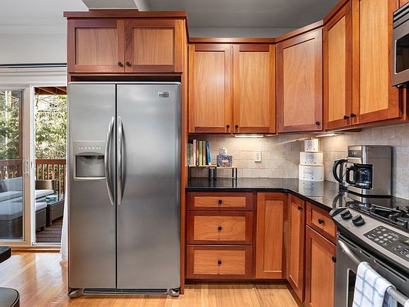 East side living, but renovated in 2012. Very spacious, natural light filled home on charming City Point street. Desirable and ideal locale nearby M Street beach for enjoying salt air and summer breezes. This fantastic condo offers a flexible floor plan adaptable for your specific requirements. Enjoy an extension of main area via private tree top composite deck perfect for Al fresco dining or just unwinding. A lovely gas fireplace anchors the space adding ambience.Hardwood floors throughout the home and kitchen boasts stainless appliances (new dishwasher) and timeless quality wood cabinetry. In unit laundry will simplify life. Primary bedroom features 3 windows and may hold king bed with abundant closet space. Very generous size bedrooms. Central air & enormous additional storage for keepsakes. Bring your furry companion along for exploring this A plus neighborhood, with abundant transit options, dining, shopping, entertainment (new Park City).