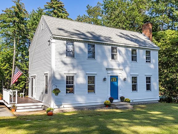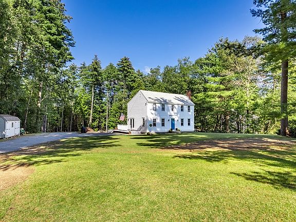 Perfectly sited down a long drive, on over an acre of land in a cul-de-sac neighborhood, this beautiful Colonial is a picture-perfect home. Abutting conservation land-The Squannacook River Wildlife Management Area, yet not far from amenities such as shopping, dining, and entertainment. Hardwood floors adorn much of the first floor and the home boasts lots of bright natural light. A beautiful fireplaced front living room, as well as an additional back family room allow for lots of entertaining space. Open concept dining room/kitchen allows for easy family gathering in a generous space. The kitchen has an abundance of cabinetry and a slider door leading to a gorgeous side deck with stone fireplace. Upstairs you will find a large primary bedroom with walk-in closet, 2 additional spacious bedrooms, and a full bath. Surrounded by a vast, level, lush lawn, making a perfect play space, gathering area, and a picturesque place to sit and relax. This is the dream home you have been waiting for!