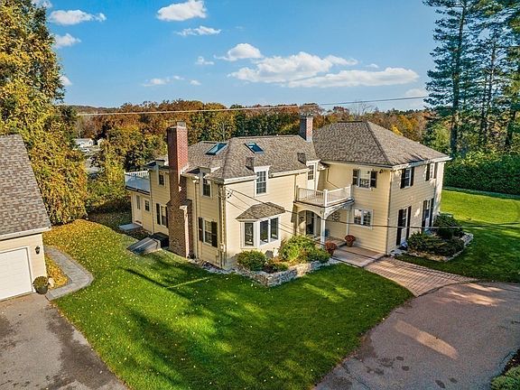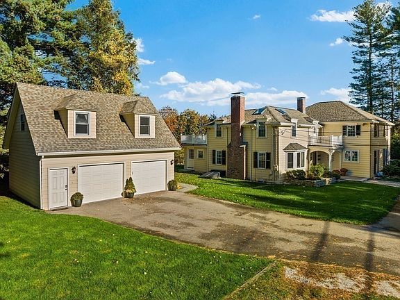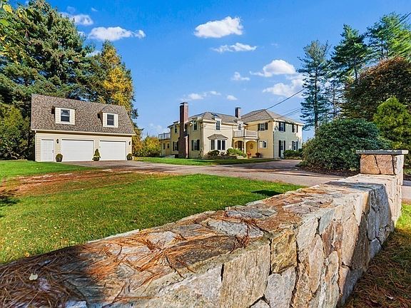 Landmark home & carriage house with architectural distinction, located in South Natick Village on one of Natick's most picturesque streets. This home honors its history while bringing a fresh attitude throughout the expansive rooms. It features a stunning galley kitchen with Wolf gas cooktop, Bosch double ovens, wine fridge, granite, stainless, sliders to a patio & is topped off with an elegant breakfast room with walls of glass & sliders to the patio. Oversized living room with a fireplace, formal dining room with a French door leading to the back patio, home office with separate exterior entrance & 1/2 bath. Delightful family room & an enormous laundry / pantry room. The primary suite is massive with a cathedral beamed ceiling & a private deck. 3 other generous size bedrooms & a balcony off the 2nd floor hall. Formal front stairs & utilitarian back stairs. Upper level of the carriage house has two finished rooms a kitchenette & a full bath. Large, spectacular, park-like grounds.