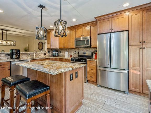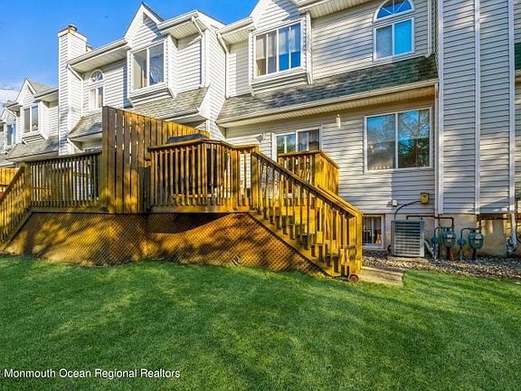 Showings start on March 3rd. Stunning 3 bedroom 2 1 bath townhouse in Old Bridge's prestigious Bridgepointe. Huge three year old kitchen with expansive cabinets, center island with seating, granite countertops, stainless steel appliances. Open concept living space makes entertaining a breeze. Hardwood floors throughout. Three skylights bring in tons of natural light. Huge ceramic tiled finished basement with gas fireplace partially below grade. Primary bathroom boasts soaking tub, separate shower stall and double sink vanity. Just unpack and enjoy. Close to major highways and shopping. Complex includes outdoor pool, fitness center, playground, clubhouse.