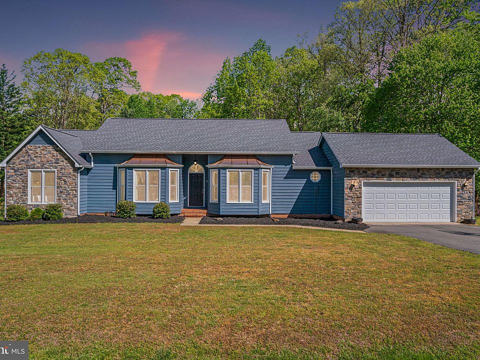 OPEN HOUSE IS CANCELLED. UNDER CONTRACT. Welcome to this beautifully updated rambler, perfectly situated in the desirable neighborhood of Blythedale minutes from downtown Fredericksburg, shopping, restaurants, commuter lots, and Interstate 95. This stunning home features 3 spacious bedrooms, 2 modern bathrooms, and a large unfinished basement with 9-foot ceilings, offering built-in shelving and endless potential for future expansion or storage. As you approach the home, you will be immediately drawn to the partial stone detailing in the front and two bay windows, which add an attractive and unique touch to the dining room and one of the bedrooms. The home is also equipped with a 2-car garage, providing plenty of space for vehicles and storage. As you step inside, you will be impressed by the gleaming hardwoods that flow throughout the living room, dining room, and sunroom, with soaring 9-foot ceilings throughout the main level, creating an open and spacious atmosphere. The living room features vaulted ceilings and a wood-burning fireplace, perfect for cozy nights in or entertaining guests. The kitchen is a chef's dream with sleek granite countertops, plenty of cabinetry that was updated recently, a breakfast bar, a huge pantry, and sleek stainless-steel appliances. The dining area is conveniently located adjacent to the kitchen, making it the perfect spot for hosting dinner parties or casual meals. The primary bedroom is generously sized and boasts a walk-in closet, a luxurious en-suite bathroom with tile flooring, and a dual vanity sink. The remaining two bedrooms are equally spacious and feature large closets and plenty of natural light. The main level is completed by a full bathroom with modern finishes and tile flooring. A partially covered deck off the back of the home offers a perfect place to relax and enjoy the beautiful surroundings. This home has been updated with a new roof and gutters in 2022, offering peace of mind and added value to the property. Don't miss the opportunity to make this stunning home your own and enjoy all the modern amenities it has to offer!