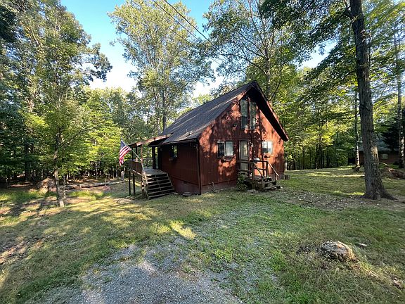 Abundant natural light and beautiful scenic views pour into this 2 bedroom A-frame home. Sit near the wood-burning stove and enjoy the view from the floor to ceiling windows. Sliding doors lead to the wrap-around deck, which is great for relaxing and enjoying the scenery & wildlife. All on 1.2 acre lot that offers complete privacy on the deck!