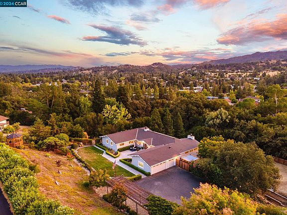 Situated on over an acre on two parcels, expect to fall in love at first sight with this private Pleasant Hill rancher boasting unobstructed views and a mecca of amenities. Exposed vaulted ceilings elongate the dining room and sunken living room offering a stone surround fireplace, custom built-ins, windows framing the backyard views and access to the back deck. The hardwood floors flow into the chef's kitchen beautifully appointed with a breakfast bar island, wine fridge, and granite countertops. Gather in the family room featuring a granite surround gas fireplace and multiple windows overlooking the vineyard. The yard is an entertainer's dream showcasing a partially covered rebuilt deck spanning the back of the house with a retractable awning, a front courtyard, sprawling front lawn, gazebo, bocce court, garden, built-in fire pit, private pergola with a brand new hot tub, and a working Zinfandel Vineyard with award winning grapes. This property has space for an ADU/pool/sport court. More highlights include a 3 car garage, leased solar, security system, storage shed, storage area, and laundry room with a sink and cabinetry.
