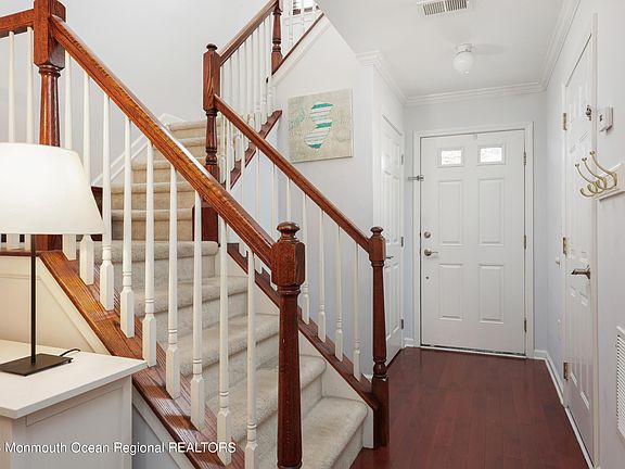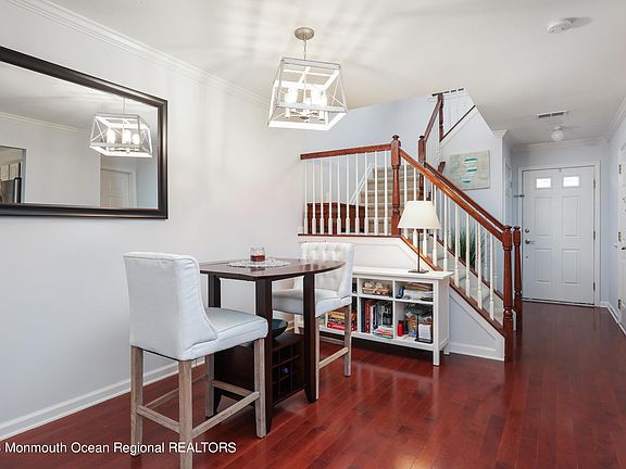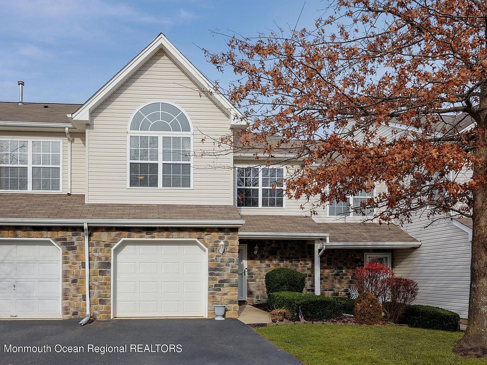WELCOME HOME to this spectacularly maintained townhome in the desirable Fox Chase of Tinton Falls! Welcoming foyer leads to an open concept layout, accented by recessed lighting and ample natural light. Spacious family room opens to the dining area and kitchen, featuring white cabinetry, granite countertops and stainless appliances. An additional dinette area grants back patio access to enjoy your outdoor space. Primary bedroom with vaulted ceiling provides a private, ensuite bath with glass shower, double vanity and soaking tub. 2 additional bedrooms, hall bath and laundry area complete the upper level. Additional highlights include a direct entry garage, decorative millwork and fresh paint. Minutes to the Garden State Parkway, swift NYC commuter access, shopping, dining and the Shore!