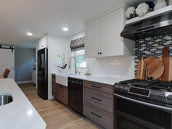 From quartz countertops, farmhouse barn doors & the beautiful details in between, this home had been remodeled throughout w/ newly installed & owned solar (2019) – reducing electric & gas bills along w/ many updates including roof, windows (all), central AC, heat pump, HW heater & more. A bright & airy open concept layout awaits at the top of the stairs making family time & entertaining a breeze w/ an adjoining Living/Dining area & stunning new Kitchen w/ French doors leading to a 9x10 deck & white subway tiles accenting the 2-toned cabinetry. A full Bath & 2 BDRMs complete the main level. Downstairs offers a Rec Room, Primary Suite w/ Full Jack & Jill Bath, Bonus Room & separate unfinished space perfect for Laundry & storage. A quaint screenhouse outback offers a space for addt'l storage or could be converted to a finished area to relax outside or to anything else you see fit. This home is turn key & ready for a new chapter of memories.