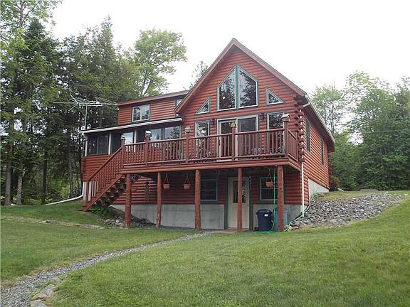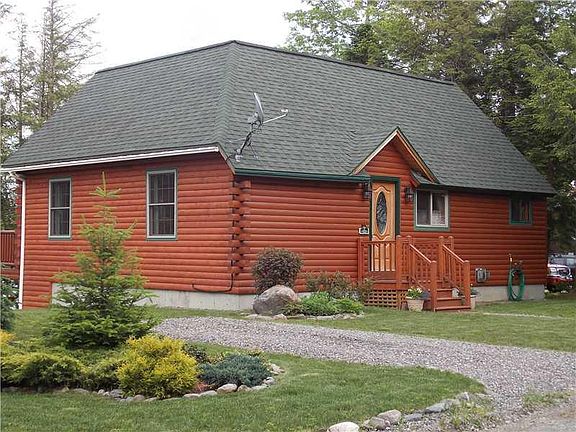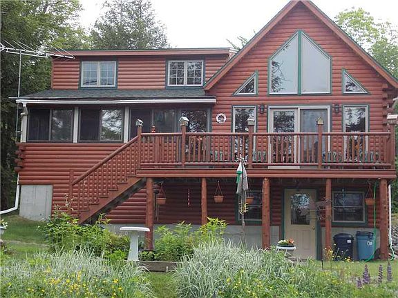 This stunning year-round waterfront log home sits on 1.36 AC. & offers a galley kitchen, LR, DR, 3 BR, 1.25 bths, deck & finished BSMNT. Home sold mostly furnished. A double lot across the road w/1 car garage ensures privacy. Don't miss this opportunity!