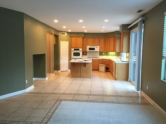 Available 08/12. Cull-de-sac Tuscany Hills home features a downstairs bedroom and bathroom, large open entry, open kitchen to family room, double oven, island, walk in pantry, built in microwave, fireplace, hardwood flooring, built in computer desk, hall bathroom with double sinks, large master bedroom, large master bath, separate tub & shower, two walk in closets, his/her sinks, and 3 car garage. **Pictures may not represent actual showing conditions. *Refrigerator not included. **Monthly landscape maintenance not included. Tenant responsible.