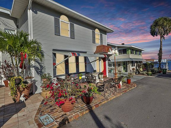 Looking for a home in a small waterfront community that has boat docks, dry storage, boat ramp and RV storage? Braden Castle is a Historical, waterfront, 55+ community where homes date back to 1925 and rarely become available as they are handed down generation after generation. This home has been lovingly maintained and current updates have been added to blend with the old-world charm. Upon arriving you will see the custom-made lamppost and portico with stained glass insert above the entry door that are a true showstopper for many. The awnings are nearly new (2019) and the gates were crafted by a local artist. Step inside and you are in a very inviting 7x12 entry room. Here you will enjoy taking in the full water views or maybe utilize this bright, breathtaking area to do artwork or another hobby of choice. The living room is of generous size, offers views of the park setting across the street and has water views as well. Beautiful oak flooring graces the living room and is carried through to your formal dining room. The chef will enjoy the updated kitchen complete with granite counters, ss appliances and a large walk-in pantry. Off the kitchen is a utility room with washer/dryer, plenty of shelving and yet another pantry. Both bathrooms, 1 downstairs and 1 upstairs, have been completely updated and have walk-in showers. Upstairs, plank flooring is throughout. The master bedroom is very spacious, offers a walk-in closet, as well as a second closet, has a window seat and its own private sitting room with full water views. The guest bedroom is quaint and cozy. It has a door inside of the closet that leads to additional attic storage space. In addition to all this, a full roof replacement was done in 2021. If you prefer tinkering outside, there is a shed in the back that would be perfect for hosting your tools and/or gadgets in addition to the garage that comes with this home. There is also an outdoor seating area where neighbors are sure to stop and say hello and where you will capture magnificent sunsets. Braden Castle is a hidden gem community where you will enjoy riding around in your golf cart, bike riding, walking, or taking a stroll on the 700' fishing pier that is only steps away from your front door. The low HOA fee of $300 PER YEAR provides you with a recreational center, shuffleboard courts, library, fitness center, private boat ramp and community events. RV, boat dock or dry storage is also available to homeowners for only $300 PER YEAR as well. Located minutes away from shopping, restaurants golf, medical facilities, major highways, some of Florida's finest beaches and much more. Start living the Florida lifestyle today in the highly sought-after waterfront community of Braden Castle.