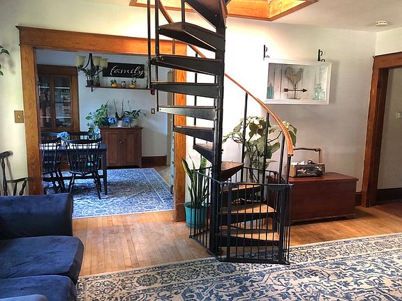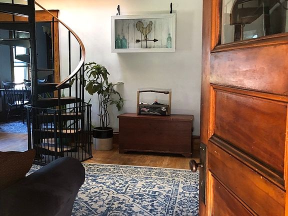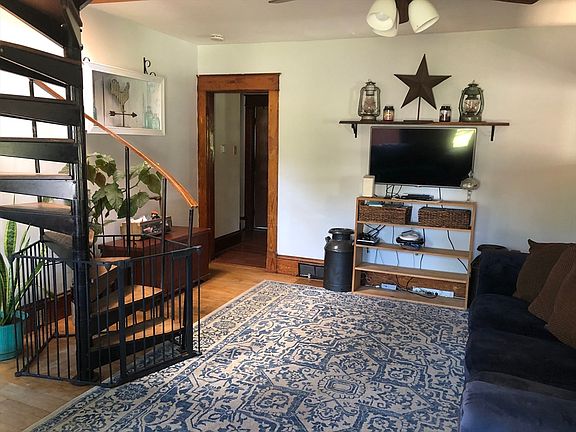 Welcome home to low taxes where this quaint farmhouse is ready for you! Enter through the enclosed front porch, a great place to watch the sun coming up in the morning, a nice spot to drop your gear when getting home for the day, or a wonderful area to sit and visit with others. The first floor offers two bedrooms with a full bath located between them. The living room with a pellet stove opens to the dining room with a built-in hutch. An upgraded kitchen offers ample storage space with two oversize pantry cabinets and a breakfast bar with a butcher block top. Walk-in pantry with numerous shelves located directly across from the convenient designated laundry room with a window allowing lots of natural light. Spiral stairs to the second floor where there are two bedrooms one with a skylight, two large windows, and two closets. A fenced-in yard with a generous-sized chicken coop. The rustic storage shed with sliding barn doors surrounds an 8-person hot tub to complete this home!