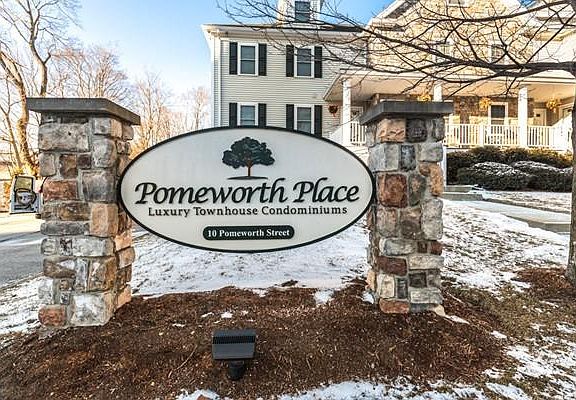 No more shoveling, no more lawn mowing! Maintenance free, luxurious tri-level (3 level) townhome at Pomeworth Place. Entertaining is a delight with open concept living room that flows into dining area & kitchen. Tastefully designed kitchen with granite counters, tiled backsplash, under mount lighting, SS appliances & custom maple EZ close cabinetry. Second floor hosts master bedroom with ensuite & walk-in closet, second bedroom, full bath & laundry. Third floor can be used as 3rd bedroom, media room, game room, home office, great room--the possibilities are endless! Additional features include, gas FP, central air, deeded, heated garage parking with storage room, common yard, BBQ area, front porch, fitness room and security cameras. Located close to shops, theater & restaurants plus only 12 miles to Boston. Rte 93, 128 & 28 all nearby. This building is meticulously maintained.