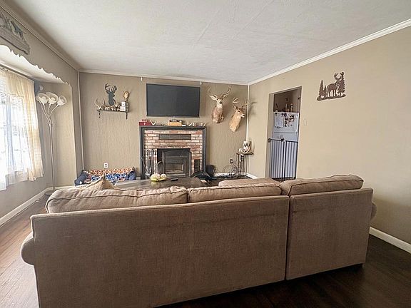 Welcome home to this move-in ready brick rancher offering 3 bedrooms and 1 bath. With a spacious living room and large front windows over-looking your yard. Living room includes a working wood fireplace to keep you warm and cozy on those brisk cold evenings. Kitchen is eat-in complete with all appliances and a pantry for added storage space. A walk down the hallway leads to 3 bedrooms complete with ceiling fans and a full bathroom. Third bedroom is currently used as a dining room. Huge basement with enough room to finish for added storage or entertainment. Hardwood flooring throughout. Backyard is fenced with a concrete pad. Shed can be used for all the lawn equipment. Roof and gutters replaced 2024. Stop by and take a look. 24 hours notice, appointments after 5:00 pm. weekdays. Property being sold AS IS. Seller is offering a 1 year Home Warranty from America's Preferred Home Warranty.