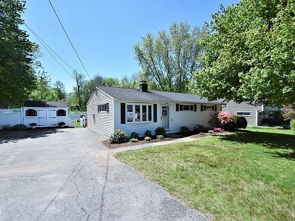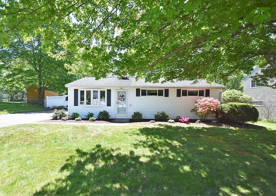This hidden gem is tucked away on a quiet dead-end street just a short walk to the bustling Town Center. Notice the colorful landscaping as you walk in the front door to this single level home. Enter through the living room featuring a newer bay window. The eat-in kitchen is complete with a breakfast bar, wood laminate floors and a separate pantry area. Three bedrooms with charming built-ins, a full bathroom and laundry area complete this home and it's looking for a new owner to make it their own. The sunny, freshly landscaped backyard offers great privacy as it's fully fenced (vinyl), level and is perfect for hosting summer barbecues! Spacious 10x12 storage shed and plenty of parking in the double-wide driveway. Town water and sewer! Replacement windows and vinyl siding make this a low maintenance home. Just over a half-mile walk to the shops, restaurants, Town Common, High & Middle Schools and a great commuter location with easy access to 495 and the Commuter Rail. See it today!