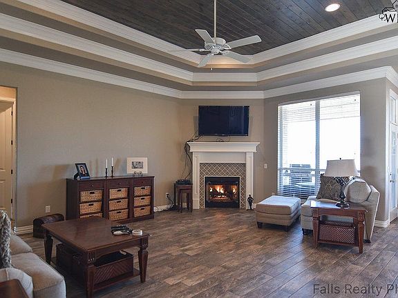 STUNNING FOUR BEDROOM HOME! This gorgeous four bedroom home has wood tile floors, 8' interior Shaker style doors throughout, gas fireplace and crown molding. The beautiful kitchen has white shaker style cabinets, tile back splash, stainless steel appliances, center island, gas cook top and large pantry. The spacious master bedroom has a private bathroom that has tile floors, double sinks, walk-in shower, Jacuzzi tub and a walk-in closet. This home has an in-ground tornado shelter and fenced yard.