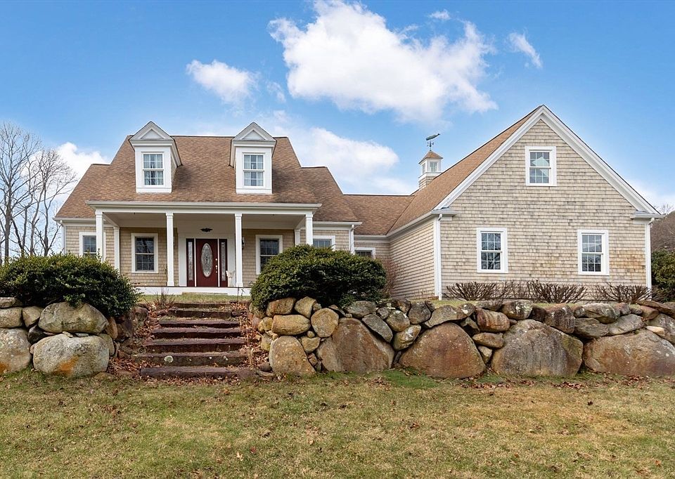 Welcome Home! Stonewall Estates is a small sought after 2 street neighborhood where you'll find this corner lot Burpee Built custom Cape. Enjoy single level living with 3 bedrooms, 2.5 baths, open kitchen/family room with cathedral ceiling & stone fireplace, eat-in area, granite counters, plenty of cabinet storage & slider to the rear deck. The formal dining room could be an in-home office. First floor laundry room with built-in ironing board. The primary suite boasts a cathedral ceiling, slider to the enclosed rear porch, primary bath with double vanity, walk-in closet, tub and shower. Guest bedrooms share a full bath. The second floor bonus room is a great escape for playing pool or watching the game. Your huge back yard features gardens, perennials, grapes, raspberries, outdoor shower & shed w/electricity. The expansive basement includes a pellet stove, brand new furnace & water filtration. Minutes to the Whitman MBTA Station, shopping, restaurants and more. Open Sun 12/21 12-2pm.